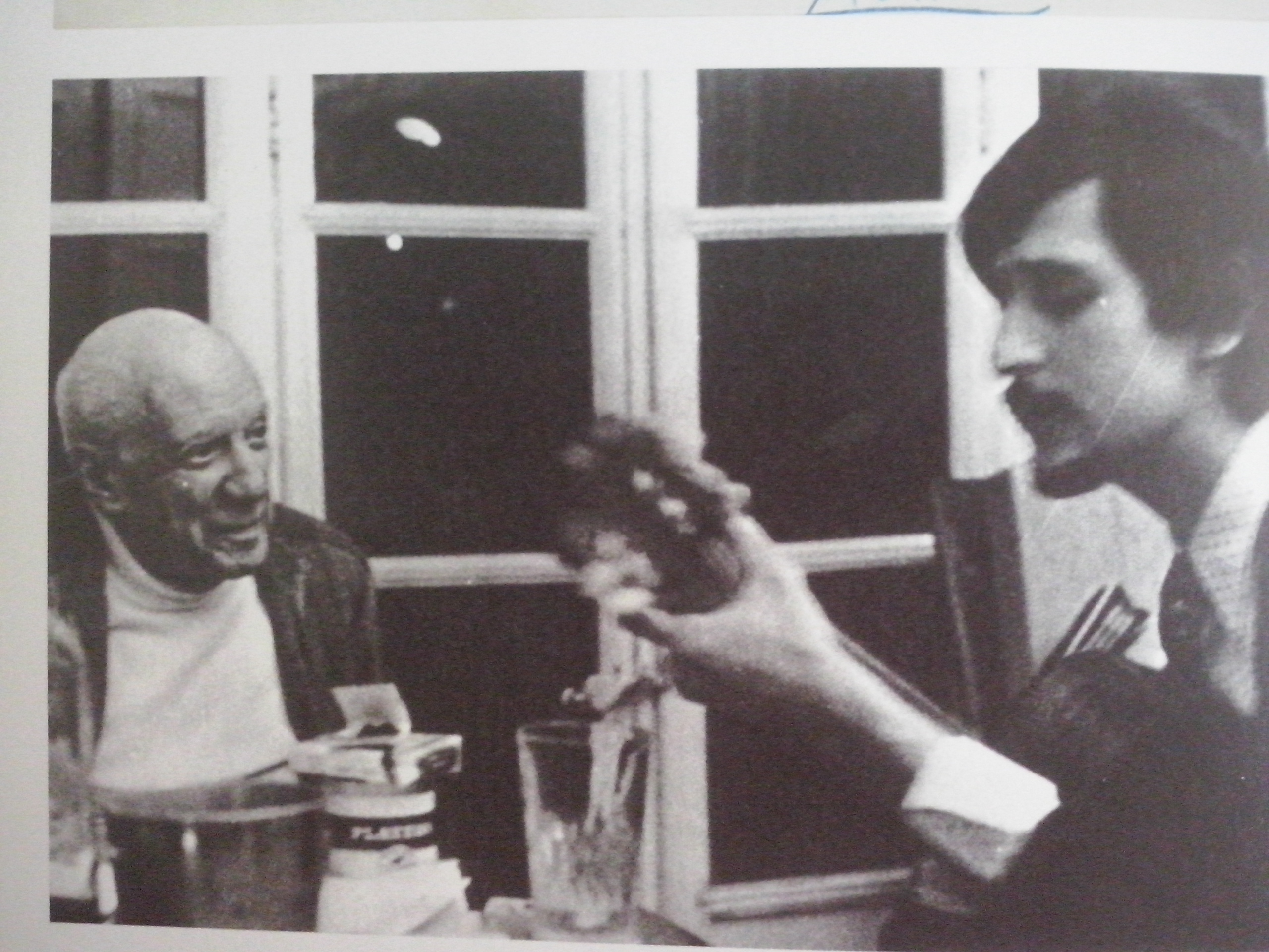 Juan Pardo tuvo la suerte de conocer al pintor en persona en 1970, momento en el que compartieron canciones de la infancia gallega de Picasso. Se repitió la historia y Picasso volvió a ser el artífice de la contraportada del disco de Juan Pardo Meu ben dorme. Sin duda parece que hubo conexión entre cantante y pintor, ya que este le obsequió al cantante con una cajetilla de cigarillos decorada y dedicada, unos dibujos con desnudos femeninos, un retrato del cantante con sombrero y dos cerámicas.